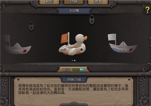 2、“时装船”就像“衣服”一样可供玩家随时“换装”。先下游戏中已经提供了多套时装船并在更新的过程中会不断新增。